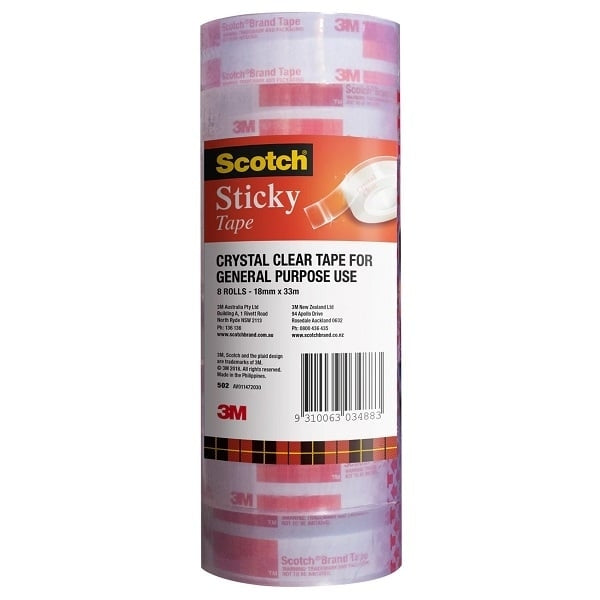 8 Rolls Scotch 502 Crystal Clear Tape 18mm x 33m