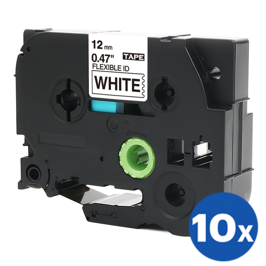 10 x Compatible Brother TZe-FX231 12mm Black Text on White Flexible ID Laminated Tape - 8 metres