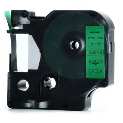 10 x Dymo SD45019 Compatible 12mm Black Text on Green Label Cassette - 7 meters