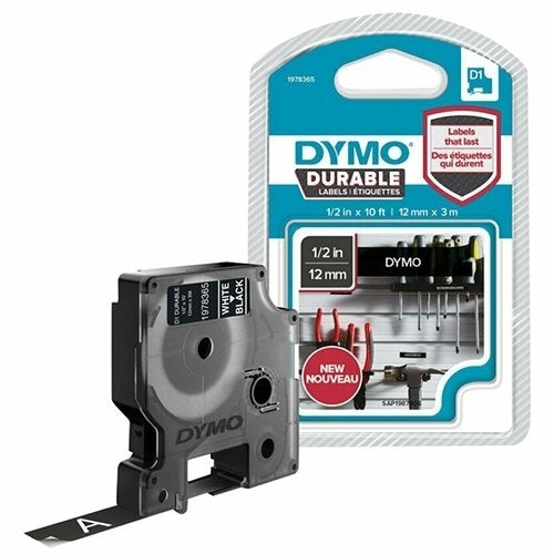 3 x Dymo SD1978365 Genuine 12mm x 3m White On Black D1 Durable Label Tape